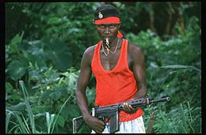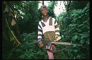 During the last decade, all warring factions in Sierra Leone have enlisted children - and we mean here as young as 12 and up - in their ranks. Furthermore, thousands have been abducted by the rebel of RUF (Revolutionary United Front) and forcibly kept in the bush while being trained first and then successfully exploited as combatants or slave workers. The same happened for young girls who were abducted, often raped and lived sometimes for years serving as sexual slaves or "married" to self-appointed RUF commanders. Now, and since a few months, an increasing number of these children are being released or succeed in escaping the brutal ruling of the rebels. As soon as whatever "release" is noticed, UNICEF - which estimates conflict in Sierra Leone has generated at least 5000 children soldiers, does its outmost to bring these children to Freetown, where a few organizations - notably COOPI, italian, Milan-based NGO, and FHM (Family House Movement) a relief charity run by 68 years old Father Berton and Rev. Chema Caballero., who helped more than 1300 children since their debut in 1997. These children - who have sometimes spent as long as 5 - 6 years in the bush - get sheltered and undergo a rehabilitation / reeducation program which can last up to months. They get through schooling schedule whose goal is to upgrade them at least to a normal-to-their age school level. Girls, in huge majority carrying babies or who just delivered one, are taught soap-making or hairdressing which makes them a little bit more skilled and job - capable. The final step is accomplished when these children get back to their villages and their families, as soon as any is found available.