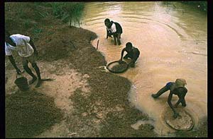 56044 After a thourough washing procedure, this gravel - every single miner's dream and nightmere - is where diamonds should jump up from
